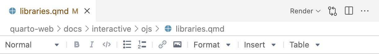 The Quarto VS Code Extension includes a visual markdown editor that supports all of Quarto’s markdown syntax including tables, citations, cross-references, footnotes, divs/spans, definition lists, attributes, raw HTML/TeX, and more: